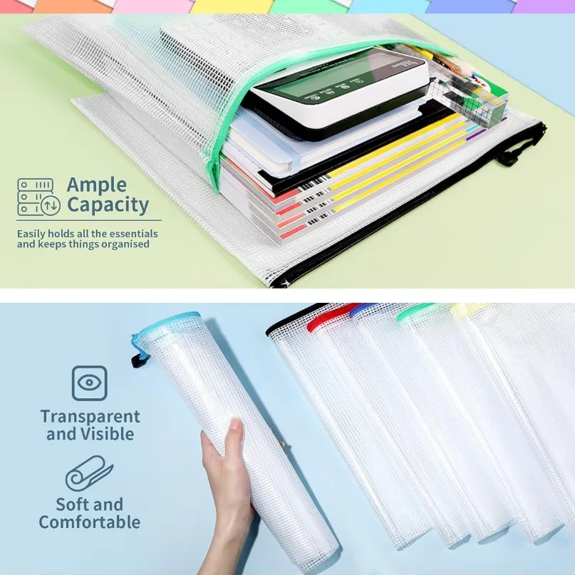 ❤ This Mesh Zipper Pouch is made of high-quality and durable PVC material. It is thicker than similar products on the market ,and can support heavy objects , convenient, not easy to break, moderately sized, making it easy to find your files.These bags are water and dirt resistant and easy to clean.